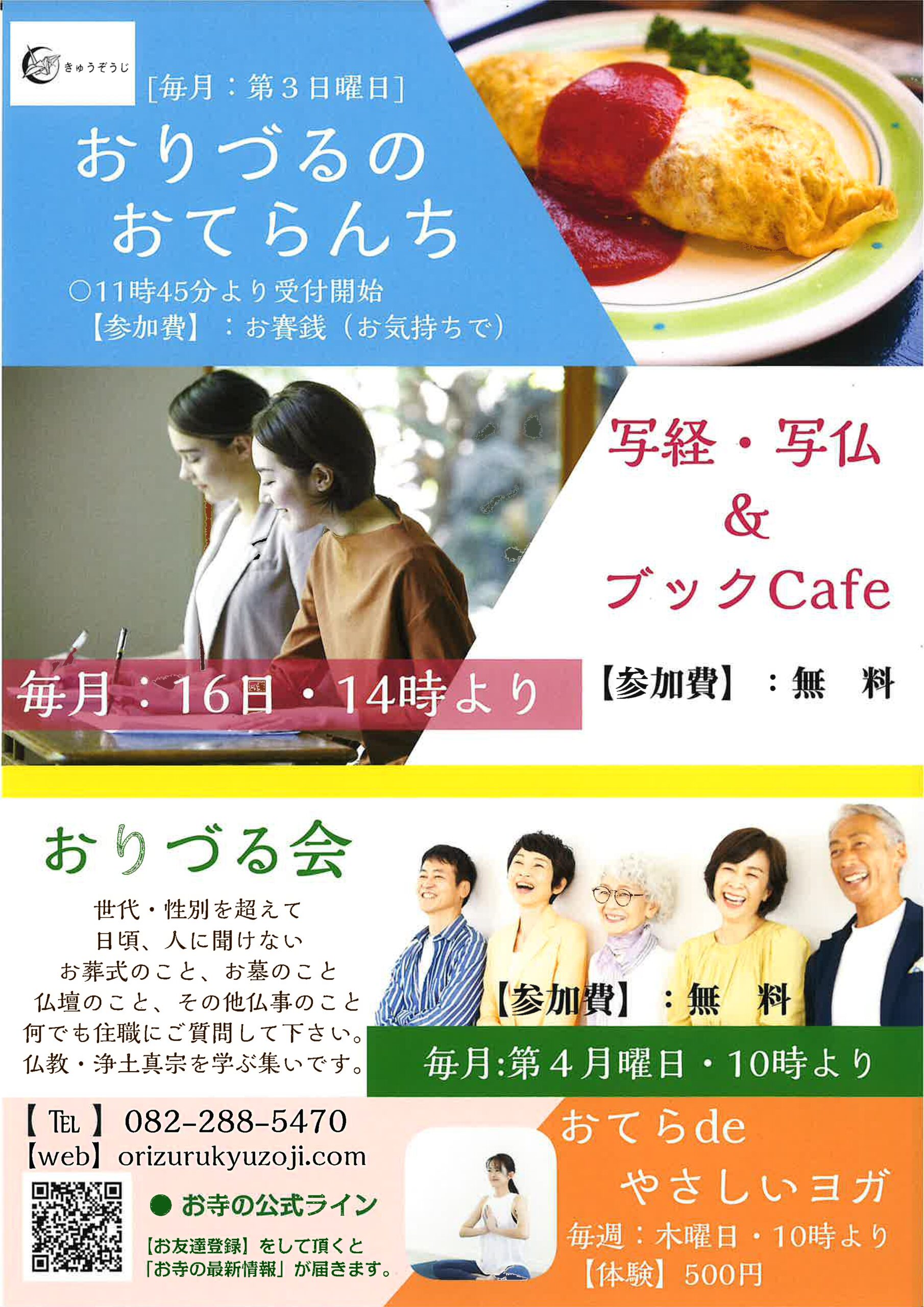 10月27日(月)10時より、本堂に於いて「おりづる会~ゼロから学ぶ仏教・浄土真宗~」があります。 公開日:2025.10.18 新着情報 投稿ナビゲーション 10月24日(金)10時より、本堂にて「おてらde姿勢改善」があります。10月31日(金)10時より、本堂にて「おてらde姿勢改善」があります。