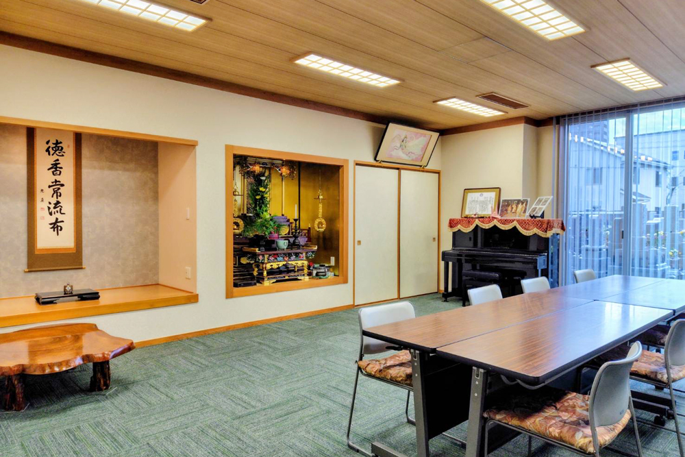 本堂の法要は椅子席です。土足でお上がりください。少人数から多数まで対応できます。